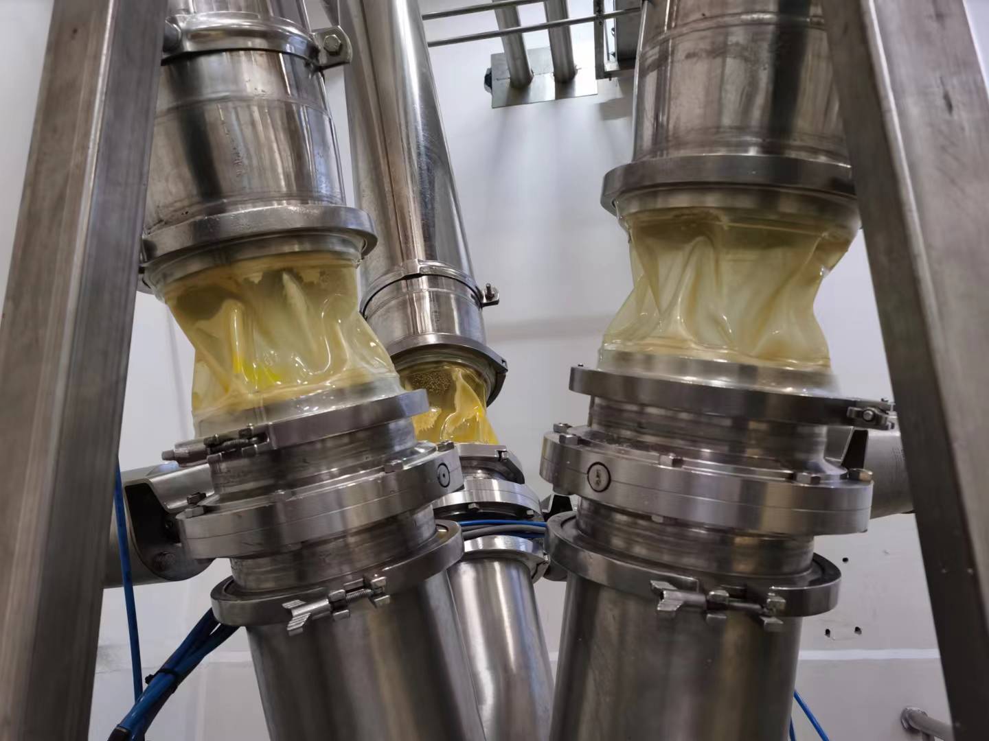 食品級(jí)快裝軟連接產(chǎn)品特點(diǎn)?� 采用基于標(biāo)準(zhǔn)管道設(shè)計(jì),通過(guò)接頭和特別設(shè)計(jì)的卡箍實(shí)現(xiàn)完美密封。采用食品級(jí)TPU薄膜精密焊接而成,做工精細(xì)平滑、密封嚴(yán)密無(wú)泄漏、耐磨抗撕裂、透明以便觀察,另外具有安裝方便、尺寸標(biāo)準(zhǔn)化、方便備件和維護(hù)等優(yōu)勢(shì)。透明、便于觀察物料流動(dòng)情況;極度耐磨、抗撕裂、耐油、壽命為普通橡膠的10 倍以上;可以任意直徑尺寸,無(wú)最小起訂量要求;符合食品衛(wèi)生要求?�